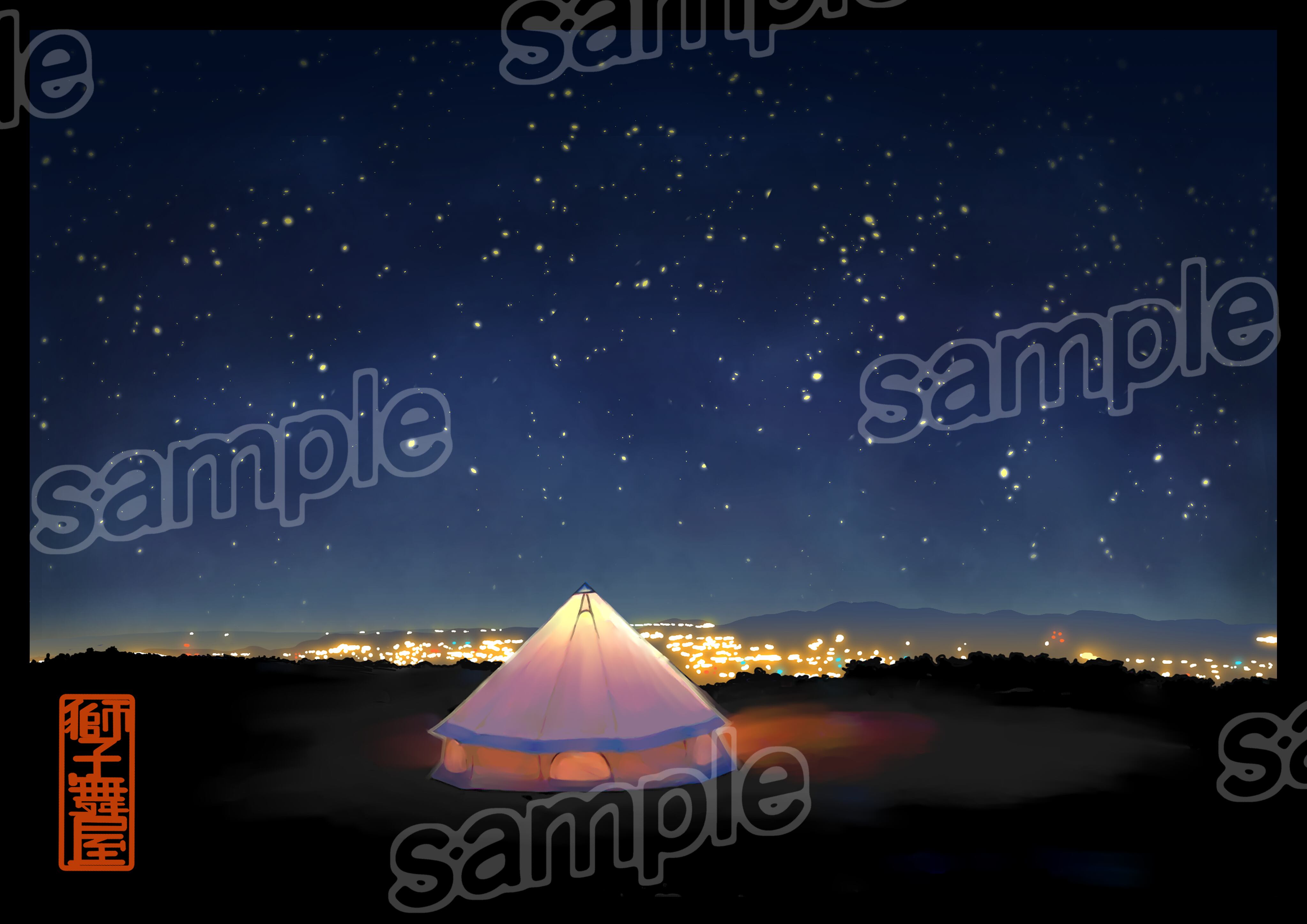 空と街の灯りを同時に見れる景色をイラストにしました。
