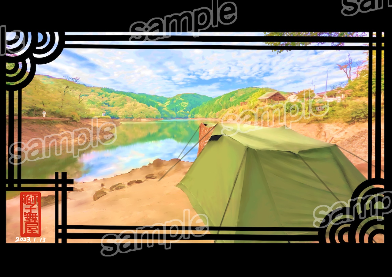 ある日の湖畔キャンプの風景をデジタルイラストにしました。